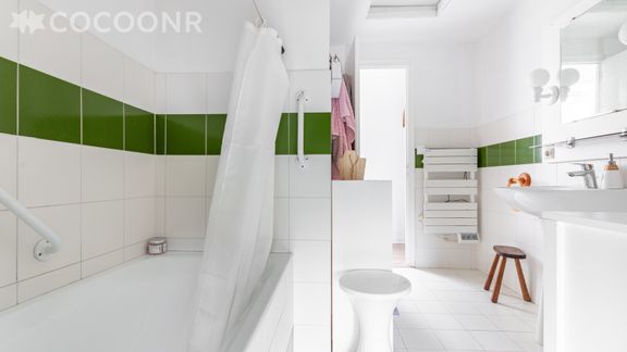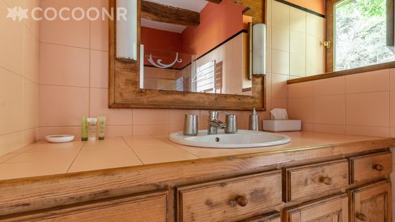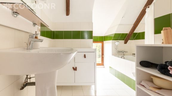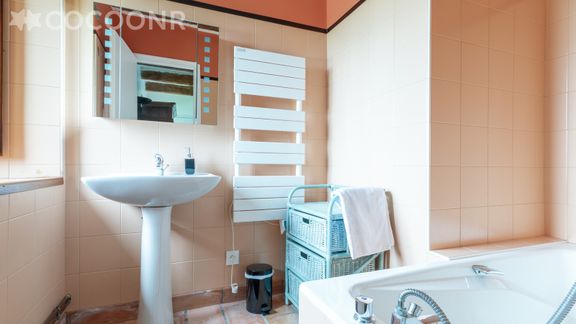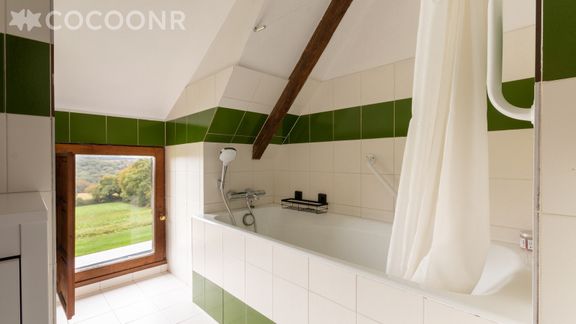 - Une salle de bain avec baignoire.
