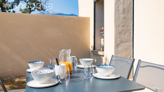 Une merveilleuse oasis dans un environnement extrêmement calme. La cuisine et la salle de bains sont spacieuses et lumineuses, la salle de bains est plutôt petite (mais tout à fait suffisante pour une personne seule !), mais dispose d'un wc séparé. Vue sur les oliviers environnants, les pâturages et les collines (y compris le Canigou). La communication avec Capucine a été très simple, rapide et utile : merci pour tout !