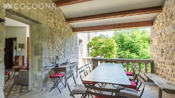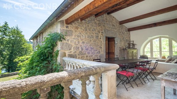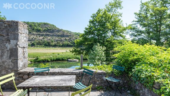 - Une agréable terrasse en pierre de 30 m², avec une splendide vue sur la rivière et sur les plateaux de l’Ardèche.