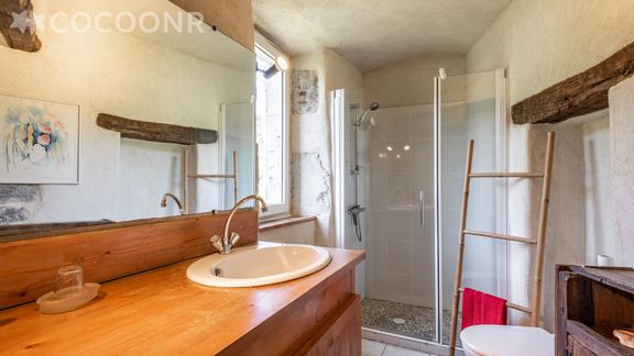 - Chambre 4 : un lit double (140×190) et une salle d'eau attenante avec une douche et un WC.