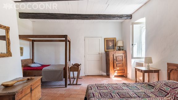 - Chambre 2 : un lit Queen-size (160×200) (possibilité de séparer en lits simples) et un lit d'enfant à barreaux (130×60).