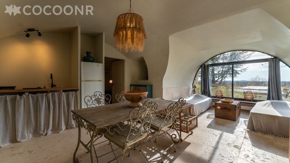 - Une pièce de vie de 40 m² avec une TV, un canapé et une cuisine ouverte équipée avec notamment : bouilloire électrique, four, four à micro-ondes, grille-pain, lave-vaisselle, plaques de cuisson...