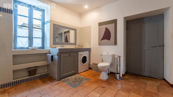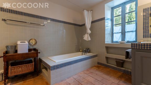 - Une salle de bain avec baignoire, WC
