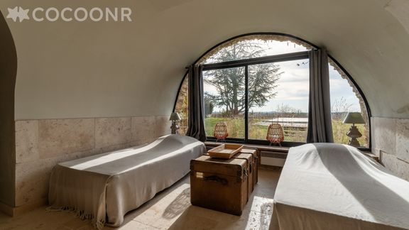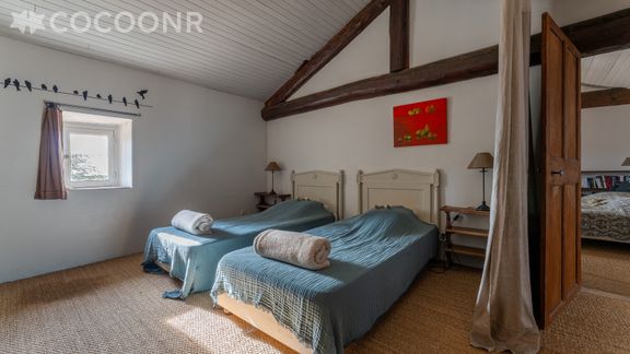 - Chambre 3 : avec 2 lits simples, elle est en enfilade avec la chambre 4, qui dispose d'un lit king-size (180×200)