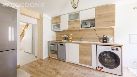 - Une cuisine équipée avec notamment : bouilloire électrique, four, four à micro-ondes, grille-pain, lave-vaisselle, plaques de cuisson...