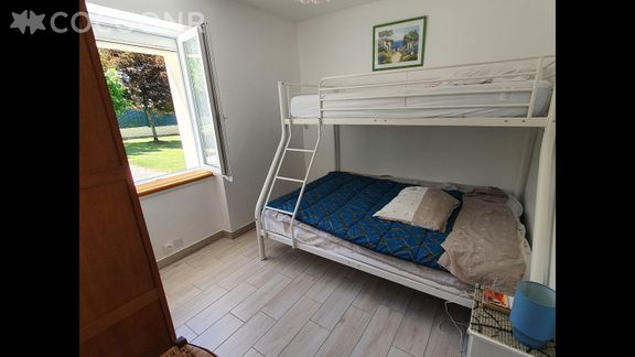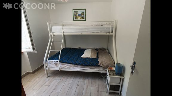 - Chambre 2 : un lit simple superposé en haut et un lit double en bas.