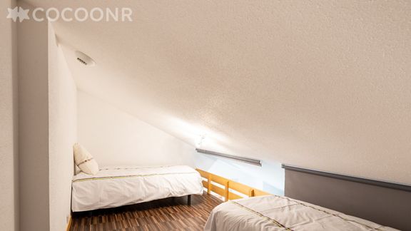 - Chambre 2 en mezzanine : deux lits simples.