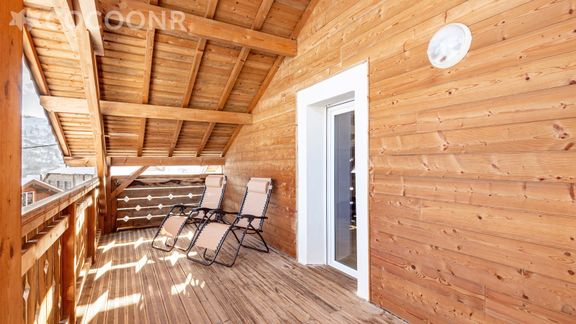 - Terrasse couverte de 18 m², exposé plein sud, d'où vous pourrez admirer la sublime vue sur la vallée. La terrasse est aménagée avec salon de jardin et deux chaises longues.