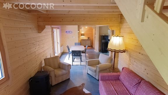 Petit point d'attention/bémol sur l'accès. Le chalet est en contrebas d'une route et est accessible via un escalier. Ce dernier est peu praticable (glissant et très en pente) surtout en période hivernale avec des enfants ou des personnes âgées.