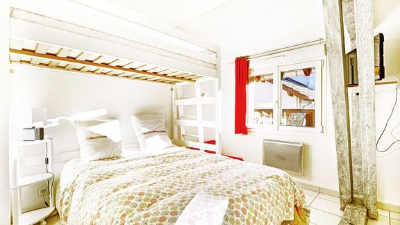 - Une chambre avec 1 lit double (140×190) et un lit simple superposé