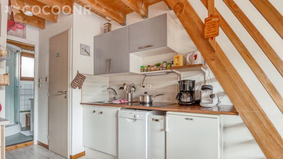 - Kitchenette entièrement équipée : four, lave-vaisselle, plaques de cuisson, réfrigérateur, micro-ondes, grille-pain, bouilloire, cafetière Tassimo, vaisselle et couverts...