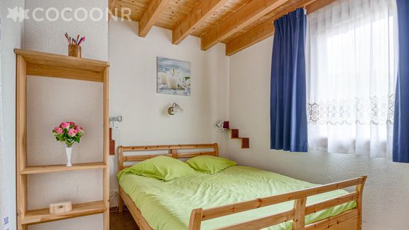 - Une première chambre aménagée avec un lit double (140 cm x 190 cm).