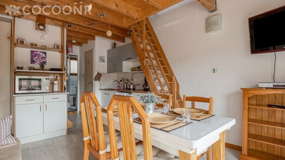 Chouette petit appartement, espaces communs adaptés pour 3-4 personnes. Bien achalandé. Une chambre en mezzanine grande et ouverte sur le salon où il fait bien plus chaud que dans les espaces de vie. Accueil sympathique et prévenant.