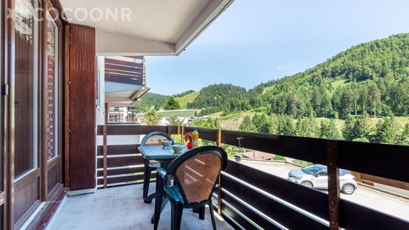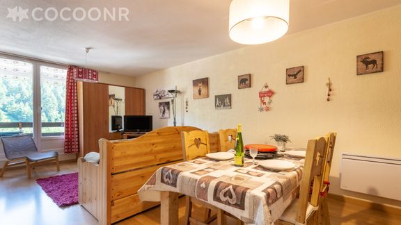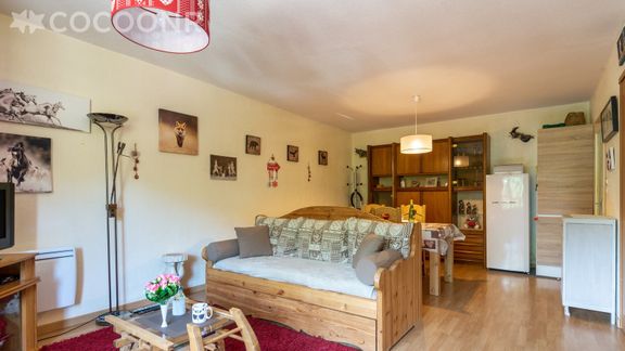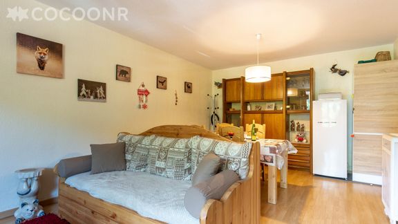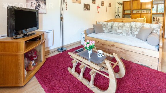 Appartement fonctionnel avec une assez grande pièce de vie, au 1er étage d'un immeuble à moins de 10 minutes à pied de la station (cours ESF, luge d'été...).