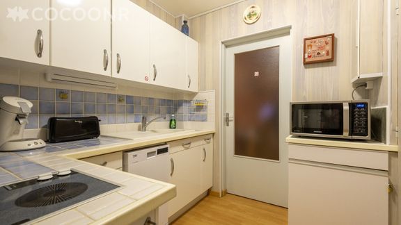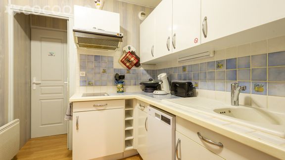 - Une cuisine équipée avec notamment : bouilloire électrique, four, four à micro-ondes, grille-pain, lave-vaisselle, plaques de cuisson, cafetière à dosettes Senseo...