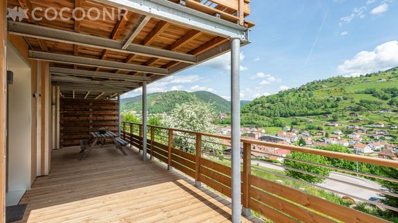 - Un balcon en forme de L, de 36 m², exposé Sud-Est Sud-Ouest, vue sur la montagne et sur La Bresse, avec mobilier pour profiter des beaux jours.