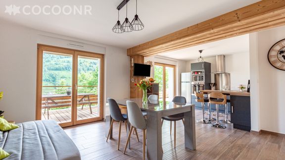 Je le recommande à 100%. Il est encore mieux que sur les photos. La vue est magnifique, proche des pistes de ski (10 min en voiture), proche du centre de la bresse (2min en voiture).
