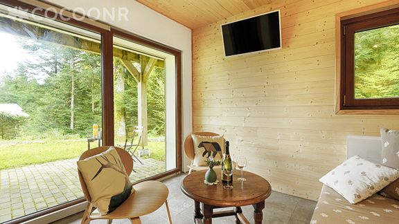 🙂 Le chalet est très bien équipé, propre. Le calme, le plus est la forêt juste derrière où l’on peux accéder facilement sur les chemins de randonnées.