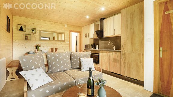 La cuisine est bien équipée, l'aménagement de la pièce de vie est faite avec goût.