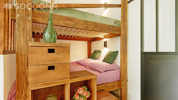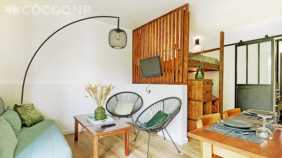 Ce logement a été très bien rénové, il est très lumineux, et bien aménagé (coin repas, coin couchage, coin salon, terrasse aménagée, kichenette, petite salle de douche) tout ça dans un espace certes limité...