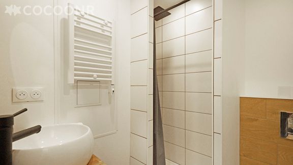 - Une salle de bain avec douche, WC