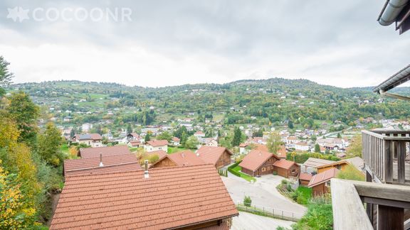 Le logement se situe dans la copropriété le "Hameau des Chaumes", située au calme, à flanc de colline, ce qui vous permettra de bénéficier d'une vue sur la ville et la vallée. Le bâtiment dans lequel se situe l'appartement est au fond de la voie en impasse, vous pourrez donc vous garer facilement. Vous serez à 5 minutes à pied du centre ville et du supermarché, et à 15 minutes à pied du centre de loisirs (piscine, bowling).