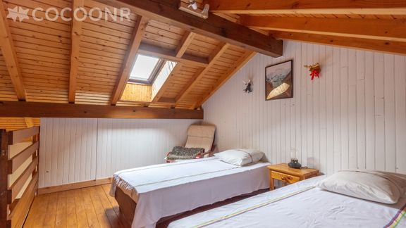 - Un espace chambre en mezzanine avec deux lits simples et la possibilité de mettre un lit parapluie.