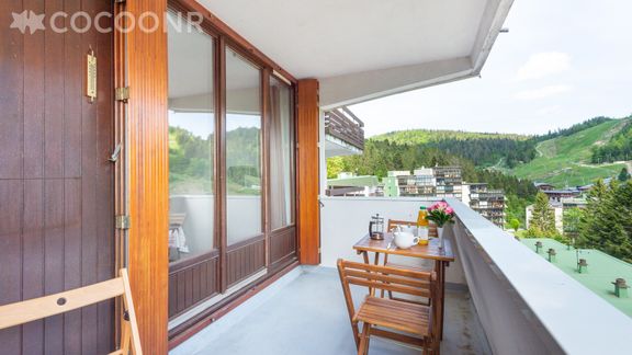 - Un balcon d'environ 5 m², exposé Sud / Sud-Est, vue sur la station de ski et la vallée, avec mobilier pour profiter des beaux jours.