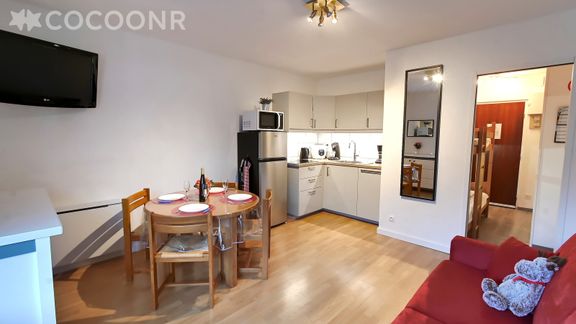 Petit logement propre et pratique dans la station. Bien équipé. Bon accueil de la conciergerie, on a bien reçu toutes les infos pratiques. Parking disponible (très precieux dans cette station), jolie vue sur les pistes et la vallée. Unique point d'amélioration : parking et accès à la résidence trop verglacés.