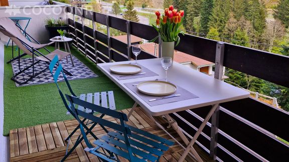 - Un balcon de 12 m² avec une table et 4 chaises de jardin ainsi que 2 chiliennes pour profiter des beaux jours