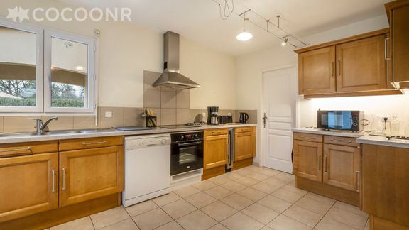 - Une cuisine équipée avec notamment : bouilloire électrique, four, four à micro-ondes, grille-pain, lave-vaisselle, plaques de cuisson...