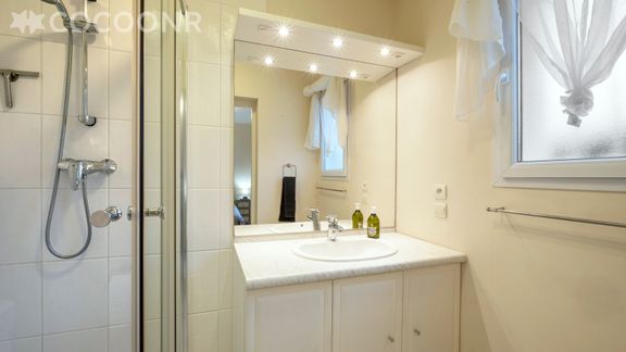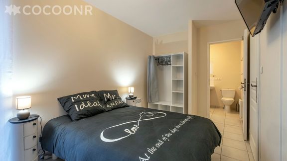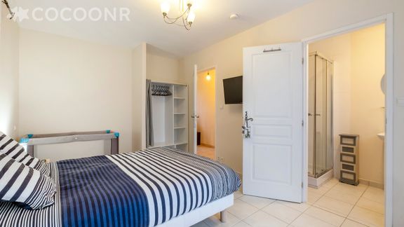 - Chambre 1 : un lit double (140×190) et une salle d'eau attenante avec douche, WC, draps et serviettes inclus.
