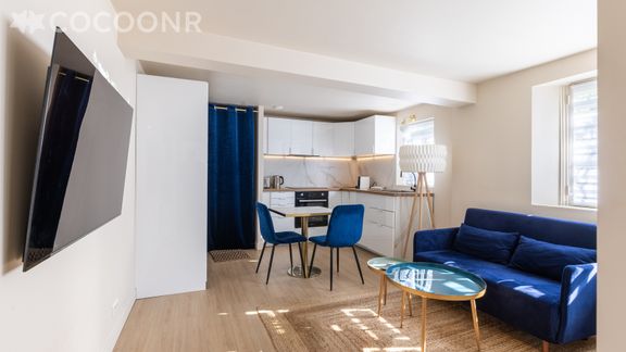 - Une pièce de vie de 20 m² avec TV, canapé-lit et espace repas