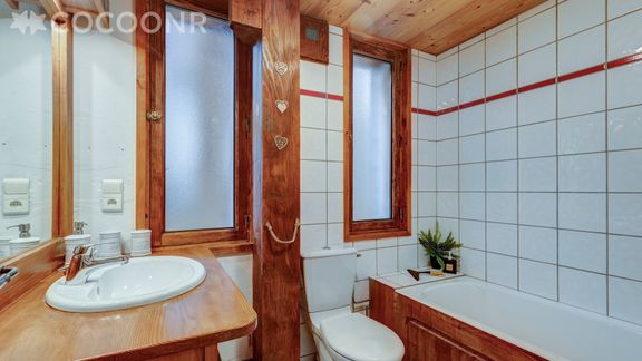 - Une salle de bain avec baignoire.