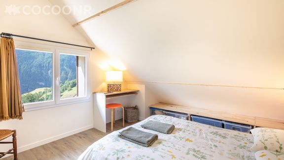 - Chambre 1 : un lit double (140×190) et un petit bureau
