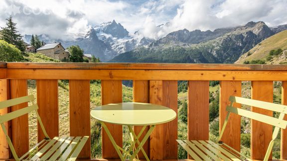 - Deux balcons d'environ 3 m² attenants au séjour : l'un face à la Meije, l'autre face au Plateau d'Emparis, avec une table et deux chaises pour profiter des beaux jours