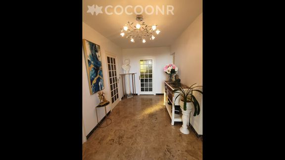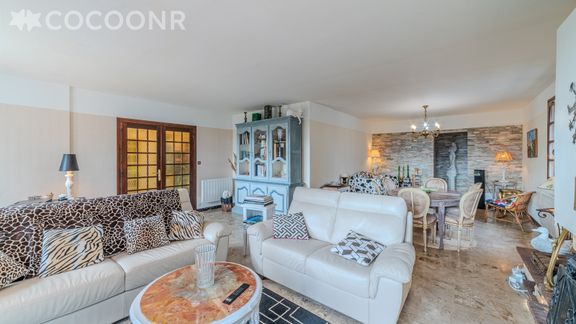 - Une pièce de vie de 56 m² avec TV, canapés et espace repas