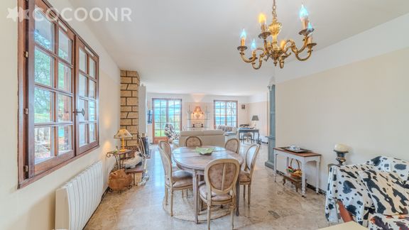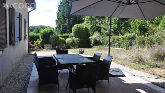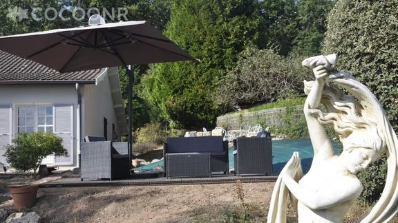 - Quatre terrasses : une devant la porte d'entrée et portes fenêtres de 30 m², une surplombant le bassin de 7 m², une au niveau du bassin de 15 m², une sous les bouleaux de 6 m² et une arrière devant la cuisine de 15 m². Exposées plein sud avec mobilier pour profiter des beaux jours.
