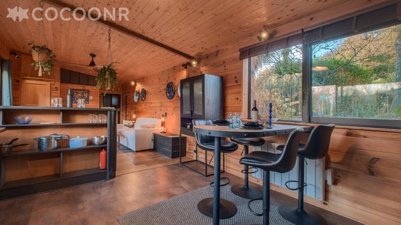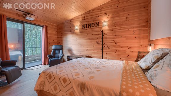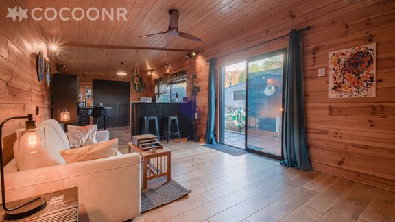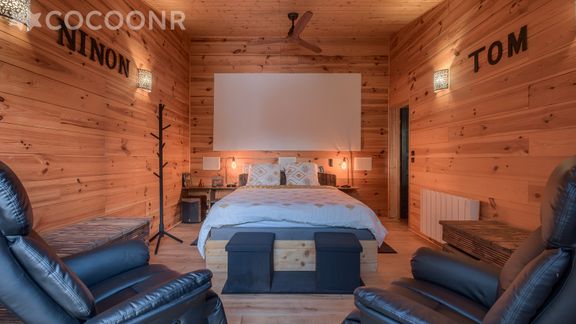 - Une pièce de vie de 40 m² avec un home-cinéma, canapé-lit double et mange-debout