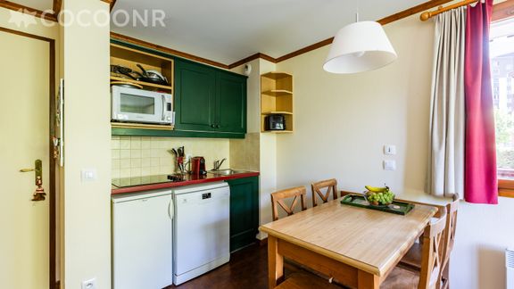L'Agence Cocoonr/Book&Pay vous propose, dans la résidence, ce charmant appartement très lumineux avec vue montagne, d’une superficie de 30 m² et pouvant accueillir jusqu’à 5 voyageurs. Situé au 1er étage (avec ascenseur), il se compose d’une jolie pièce à vivre de 20 m² avec 3 couchages, kitchenette équipée, d’une belle chambre avec un lit double et d'une salle de bain (avec baignoire). Vous pourrez profiter d’un jardin (propre à la résidence) d’environ 1000 m².