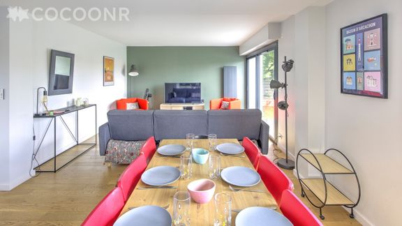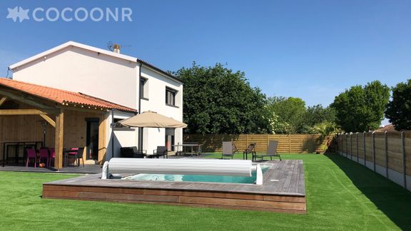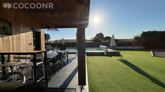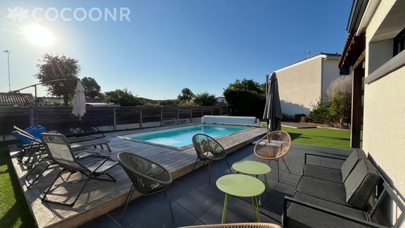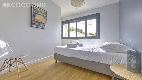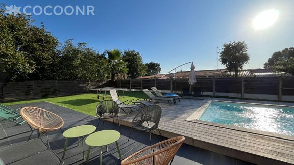 L'agence Cocoonr vous propose à la location, à La Teste-de-Buch, cette charmante "Villa Palmyra" avec piscine et wifi, d’une superficie de 120 m² et pouvant accueillir jusqu’à 10 voyageurs. Elle est composée d’une jolie pièce à vivre, cuisine équipée, de cinq belles chambres, une salle de bain (avec douche) et vous pourrez profiter d’un jardin avec terrasse couverte et piscine chauffée (de mai à fin septembre).