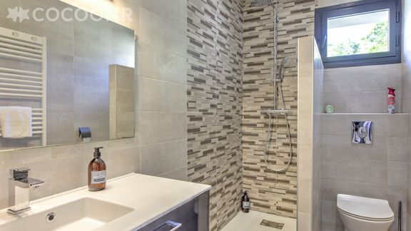 - Une salle de bain avec douche et WC