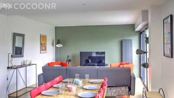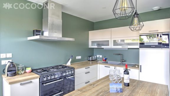 - Une cuisine équipée avec notamment : bouilloire électrique, four, four à micro-ondes, grille-pain, lave-vaisselle, plaques de cuisson...