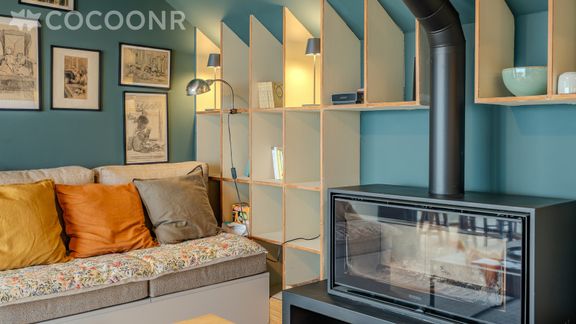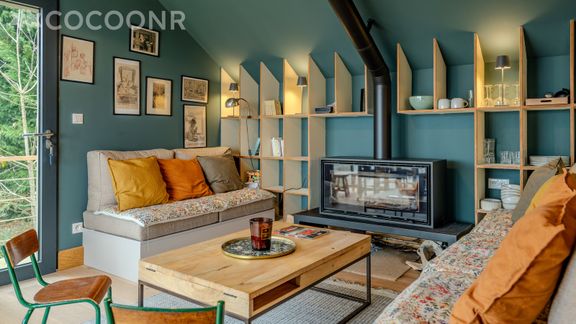 - Une pièce de vie de 25 m² avec canapés, poêle à bois (5 bûches fournies) et salle à manger