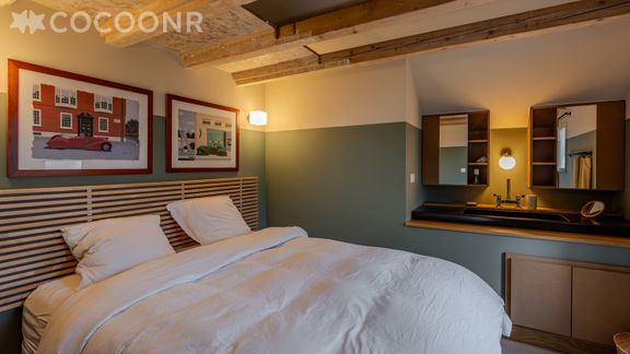 - Chambre 1 : un lit queen-size (160×200) avec salle d'eau avec douche et WC