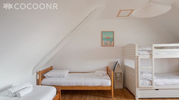 L'agence Cocoonr vous propose à la location, à Lamballe-Armor, cette charmante maison typique du bourg de Planguenoual, avec wifi (fibre optique), d’une superficie de 165 m² et pouvant accueillir jusqu’à 12 voyageurs. Elle est composée d’une jolie pièce à vivre de 30 m² (avec cheminée), cuisine équipée, de six belles chambres, deux salles de bain (avec douche et baignoire) et vous pourrez profiter d’un jardin d’environ 200 m². Le ménage est inclus dans la location et du linge de qualité hôtelière 4* vous est fourni (draps, serviettes de toilette, torchons), votre lit sera préparé à votre arrivée.
