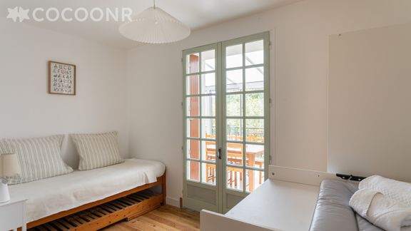 - une petite chambre entièrement équipée pour bébé : table à langer, lit parapluie (matelas non fourni), baignoire et chaise haute également à disposition. (Le lit simple présent dans cette chambre ne sert pas de couchage.)
