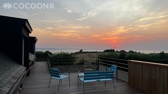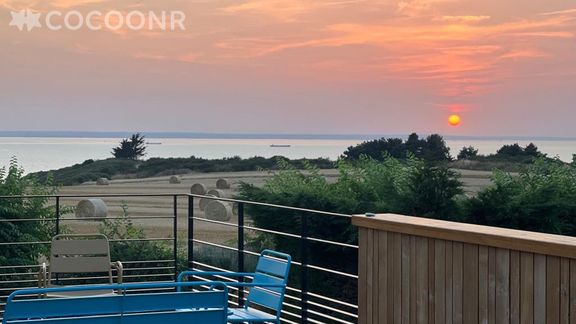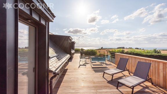 - Une troisième terrasse à l'étage bénéficiant d'une magnifique vue mer, idéale pour apprécier les sublimes couchers de soleil, avec salon de jardin et des transats.