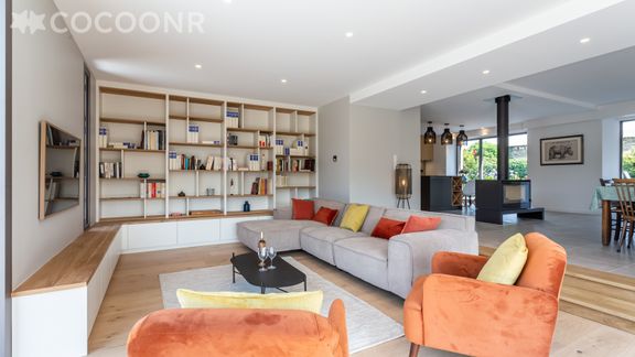 Au rez-de-chaussée, vous découvrirez un magnifique salon de 85m² doté d'une bibliothèque bien garnie, parfaite pour les amateurs de lecture souhaitant se détendre dans un espace paisible. À côté, un spacieux séjour invite à partager des moments conviviaux autour d'une grande table pouvant accueillir tous les invités.
