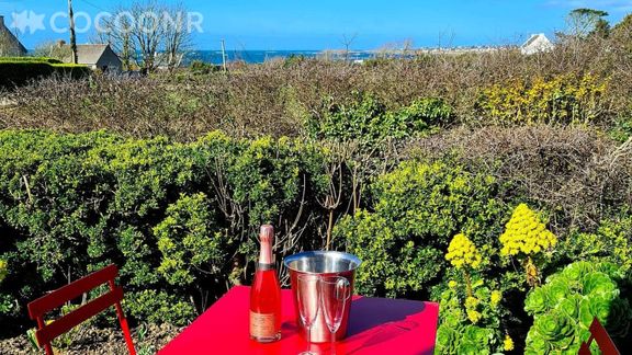 🙂 Pas de petit déjeuner puisque c'était un petit appartement.. Endroit très tranquille.Pas très loin d'un port pour Ouessant... Très belle vue à 100 m environ...